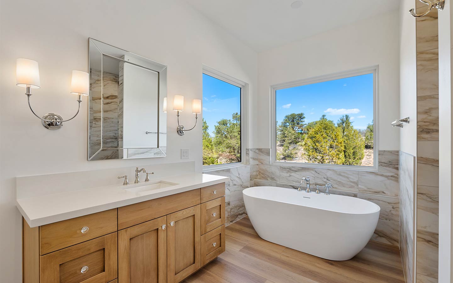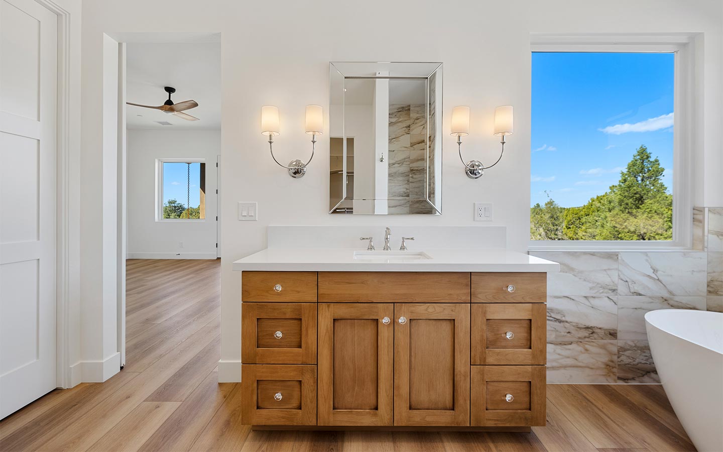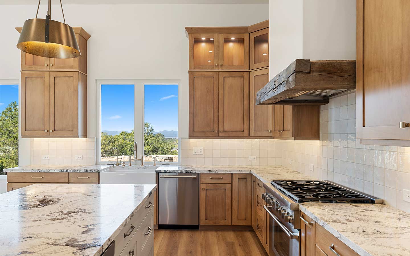 Sterling Mesa is a Sterling Ranch custom home designed for high-desert living, with bright, open, and grounded in natural materials that feel like they belong here. Clean lines, warm wood tones, and stone details keep the modern ranch vibes without losing that Prescott-area character.